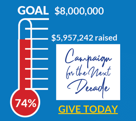 Great strides have been made toward reaching our $8 million goal for the Campaign for the Next Decade. Thank you to everyone who has contributed – your gifts directly boost access to life-changing care and support for children, older adults, and entire families within our wonderful community.