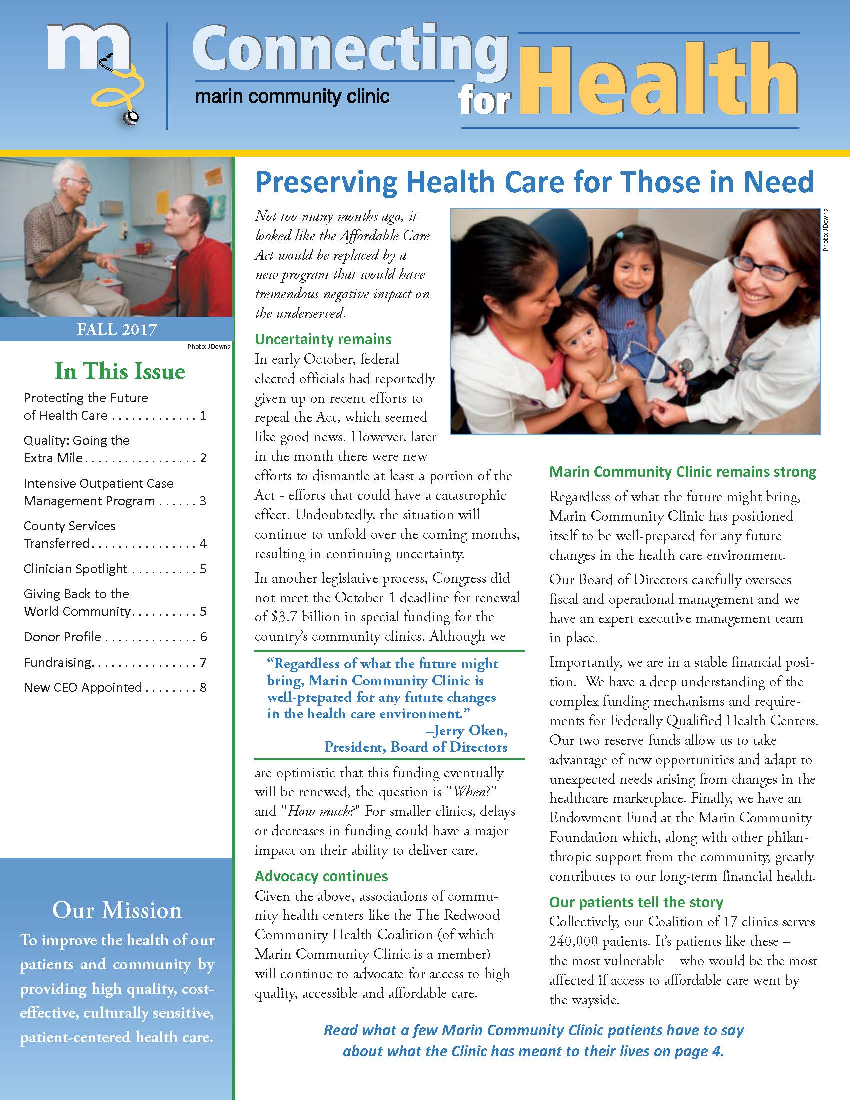 At Marin Community Clinics, we rely heavily on our dynamic community of donors. It is our donors that allow us to add/enhance programs that provide quality, cost-effective, culturally sensitive, patient-centered health care.