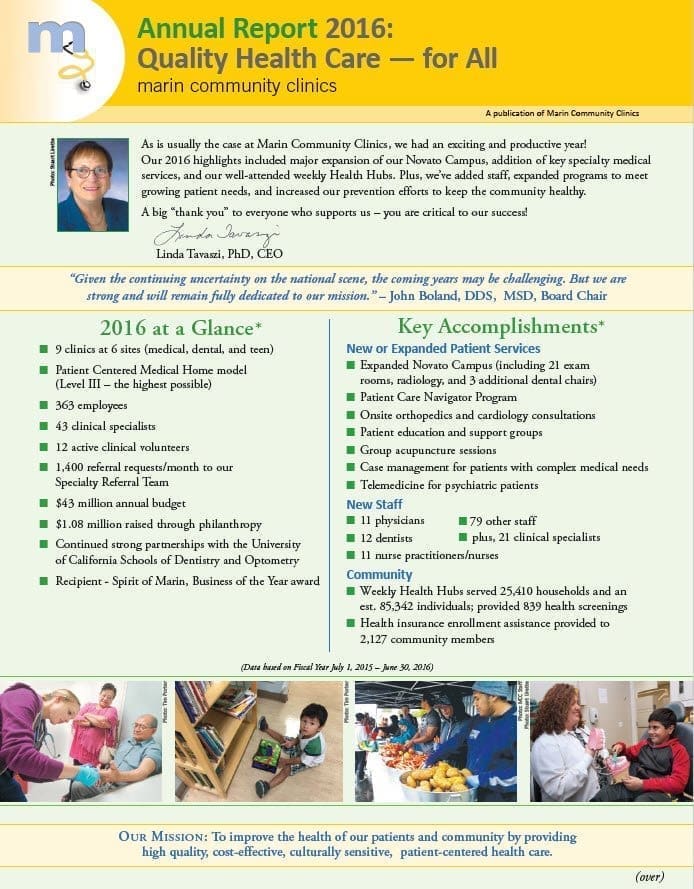 A few years ago, Marin Community Clinics sent a strong message to our supporters: with the advent of Health Care Reform and the Affordable Care Act (ACA), things were going to rapidly change – and we were prepared.