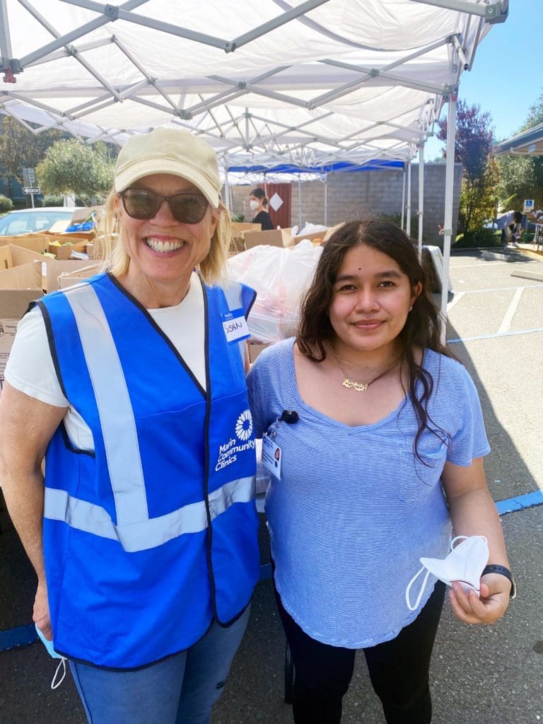 Volunteer Susan Clark (L) is all smiles with Health Hub Supervisor Rosalinda Camacho at the San Rafael Health Hub.