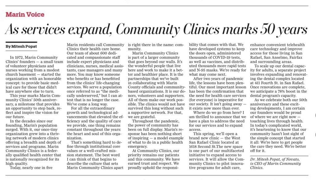 Marin Voice: As services expand, Community Clinics marks 50 years of health care