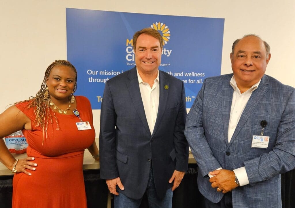 Assemblymember Damon Conolly with Interim CEO Leigha Andrews & Medical Director of Strategic Projects, José A. Chibrás-Sainz, M.D.