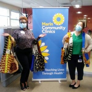 Because of Nancy and Rich’s generosity, supporting village women working for a full 8 weeks, the group offered to hand-make these gorgeous custom bags for them. Nancy and Rich chose Marin Community Clinics as one of the beneficiaries, and the Clinics are now giving them to staff members in recognition of National Health Center Week, and for their work in caring for the underserved in Marin.