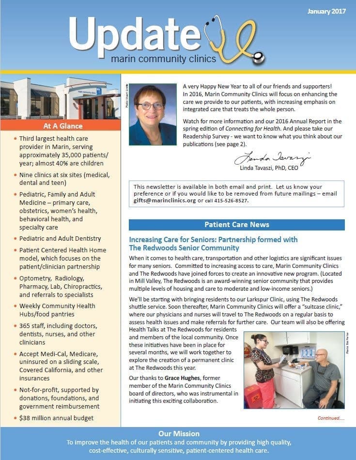 This Newsletter is available in both email and print. Let us know your preference so you can receive future mailings – Email: Gifts@MarinClinics.org or Call (415)526-8527